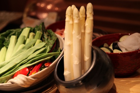 門崎丑(かんざきうし)はどうしても外したくなかったので、1ヶ月前からオファーを掛けておいたのだが、吉田純一シェフ(日本鉄板焼協会師範)がばっちり揃えてくれた。それに加えて極上のタンや大きな蝦夷鮑(えぞあわび)、ジャンボ白アスパラガスも目の前に置き、万全の体勢である。
