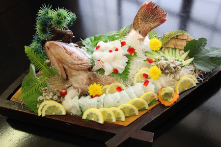 また、今回美味しかったのは「アズキアコウの洗い」。真っ白なプリプリな身に山葵をのせて甘露醤油で食べてみた。まあ、これは美味い!!皮の湯引きもコリコリの食感で最高の海の幸だ。