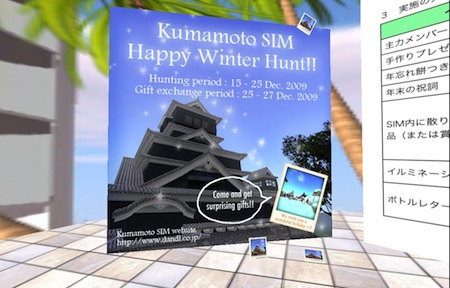 夜の11時半頃にセカンドライフ「熊本ジャパン」にログインすると、既に主力メンバーのタゴネコ、ケニー、ヌイーユ、グレイシーの4名がタワーマンションの会議室で打ち合わせをしていた。