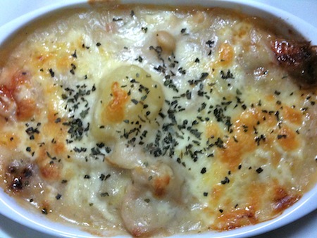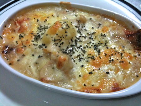 冷蔵庫を覗くとチーズがちらちら・・・グラタン皿も見え隠れするので、このような料理になってしまった。