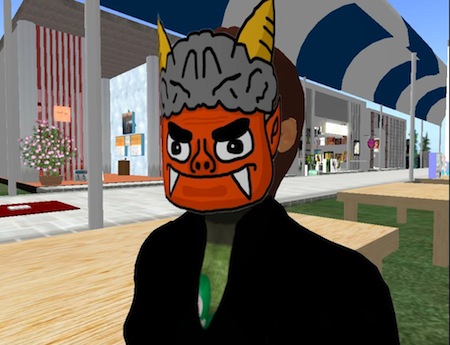 仮想現実世界セカンドライフの熊本ジャパン主力メンバーであるシャム(兵庫特派員)が、節分用のアイテムを披露してくれた。
