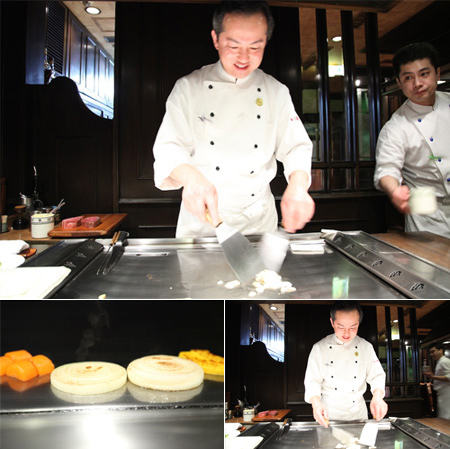 同シェフは既に30年近いキャリアを持ち、毎年自分で米を作ってレストランで出すほどの拘りようだ。ちなみに30年近く年季の入った鉄板だが、常にピカピカの玻璃面のように磨き上げられている。