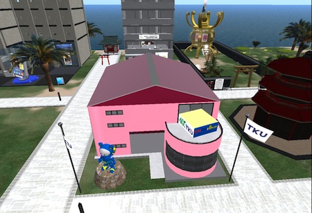 仮想現実世界セカンドライフ「KUMAMOTO JAPAN」にあるTKU(テレビ熊本)の施設。実際同局へ足を運ぶと、同じ様な建物を見た事があるような・・・。