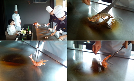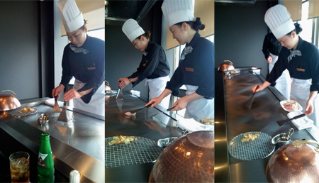 上写真は4月から5月にかけ福岡で修行中の二人の女性シェフ。それに若手の女性が一人加わり、三人の「くノ一鉄板焼シェフ」が出揃う事になる。