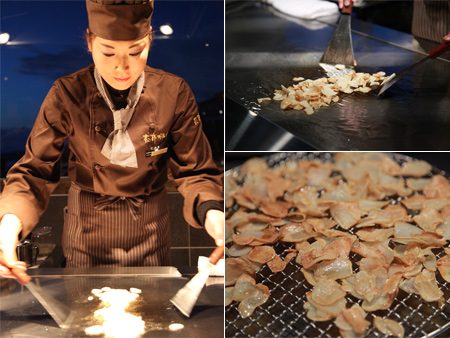 今夜も若い女性シェフたちがシミュレーションを行っていた。何度も何度も食材を焼いては試食、試食の繰り返し。オーナーやホテル社員たちが試食を行い、納得が行くまで焼き具合や塩胡椒加減をチェックする。