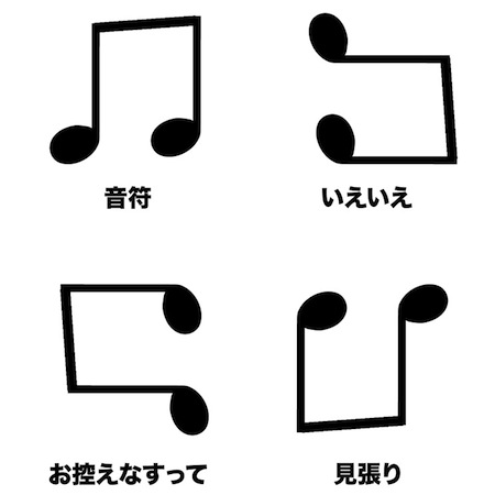 何となく眺めていると、音符というより何か人の仕草に見えて来た。どれどれ・・・身体をゴロゴロしながらまた眺めていると、アニメに出てくる顔無しが「いえいえ」と遠慮しているような姿に見えたり、「お控えなすって」と見えたり、蛇の夫婦が監視しているような姿にも見える。