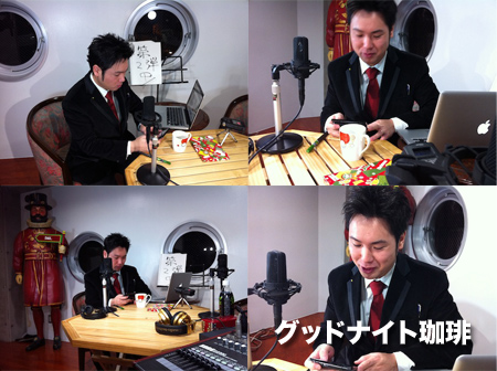 昨夜午後9時前から少々フライング気味で放送を開始したUstream番組オオチャコの「グッドナイト珈琲」。D&L TVの第1スタジオにて放送を開始したのであった。しかし、機材の調整不良もあり、ノイズがなかなか抜けない。急遽、第2スタジオへ移動し、再開。またもやUstreamサーバー側から嫌われたのか、一度落ちてしまった。