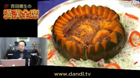 本日午後9時から第3回「西田親生の満漢全席」がライブ放送される。