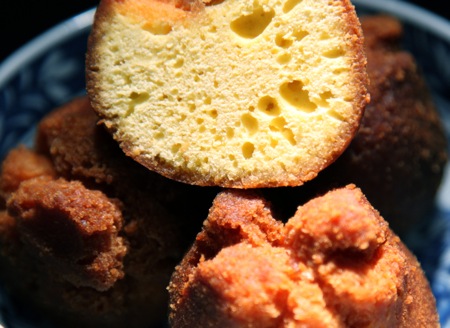 最初はそのまま食べてみた。大きさも直系約6センチとかなりのものだ。揚げたてでないが、中身は卵が多い為に黄色でふわふわしている。更に、オーブンで軽く焼いてみた。・・・外側さっくり、中ふわふわ。