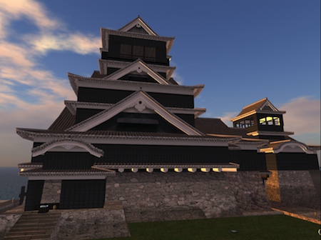 セカンドライフ内では、プリミティブでの製作において、データ量や技術的にもかなり限界はあるものの、現実世界の熊本城とほぼ実寸代で制作しているところが同社自慢の一つでもある。