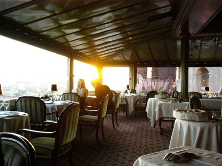 最後の写真はイタリア料理最高峰として有名なルーフトップ。名門ホテル・ハスラーの6階にある高級レストランである。帝国ホテル東京でも「ルーフトップ・ウィーク」という企画を取り入れるほど、同レストランは世界的に名高いところだ。同レストランでは食事前のウェルカムドリンクをホテル1階中庭で楽しませてくれる・・・実にお洒落な対応だ。
