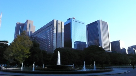 朝早く帝国ホテル東京の玄関を出て日比谷公園に足を運んでみた。早朝にも関わらずベンチに座って鳩と戯れている人や噴水をぼんやりと眺めている人、散歩している人など様々な人の流れを見る事ができる。昼間はベンチに座り込んで、ファストフードを頬張るOLなども多いようだ。