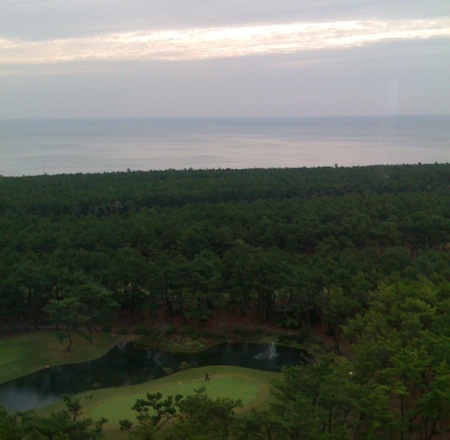 ◎シェラトン・グランデ・オーシャンリゾートから見た太平洋(手前は低木の松とゴルフ場)