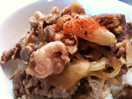 450グラムの牛肉とタマネギ、エリンギ茸だけで作った牛丼
