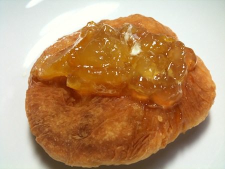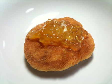 出来上がりは写真(iPhoneで撮影)のように、外側はサクサク、中身はふんわりとなかなかのものだ。・・・直径10センチの揚げパンを4つ食べてしまった。
