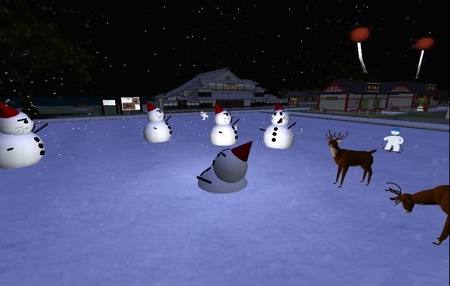 熊本ジャパン(仮想現実世界セカンドライフ)にもマイナス36度の寒波が訪れ?たのか、第2のSIM八千代座前に即席のスケートリンクを開設した。