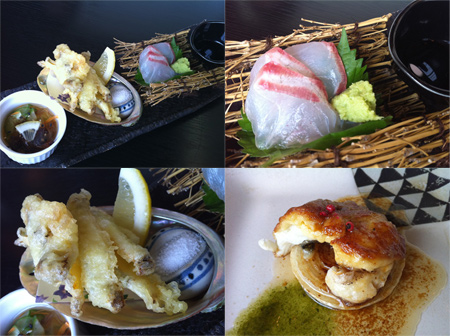 前菜から白身魚、鮑の天婦羅、フォアグラバーグ、御飯から、デザート・・・写真(iPhone4で撮影)のように、実に豪華なランチであった。