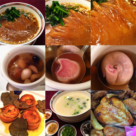 珍味でも写真(中)の通り、同ホテル 桃花源の「フカヒレ姿煮込み湯麺」、「馬の抗癌と豚の小袋のスープ」と続く。また、11階にあるトゥール・ド・シャトーの「ウサギの肉とトリュフ」は低温調理でサーブされ、さっぱりと繊細な柔らかさを提供してくれた。
