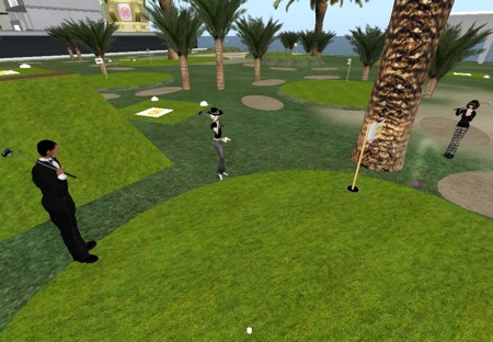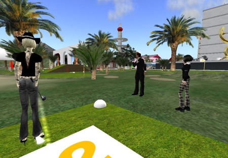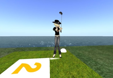 イメージトレーニングにもなるセカンドライフ内のゴルフ。クラブの選定、そして方向と強弱の勘がなかなか掴めない。