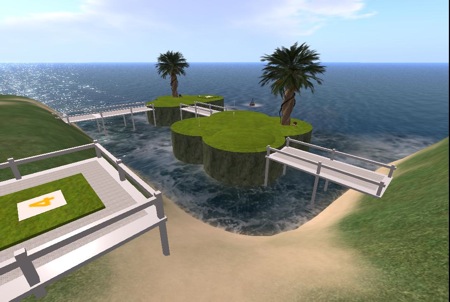三次元仮想現実世界セカンドライフ「熊本ジャパン」の第2SIMファイアランドの南東部に、「RKK(熊本放送)シーサイドGC」がプレオープンした。
