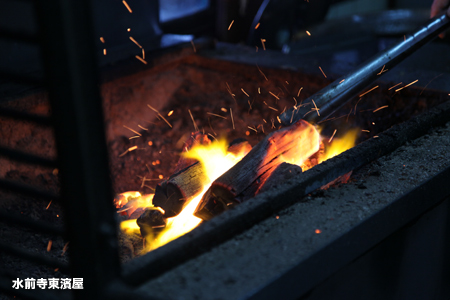 今回は初めて厨房に入らせてもらい、炭火焼を取材させて頂いた。最近は自宅で炭を使う事が無いので、取材中にここまで炭の熱がカメラを持つ手を熱くする程強いものだった。