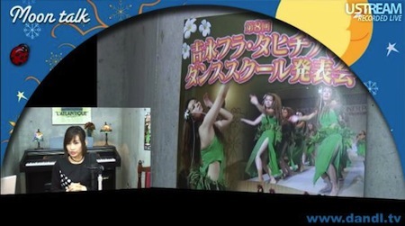 午後8時過ぎからスタートしたのが「ムーントーク」。先日同番組特番に出演していただいた吉永フラ・タヒチアンダンスや先見塾が今回のお題である。