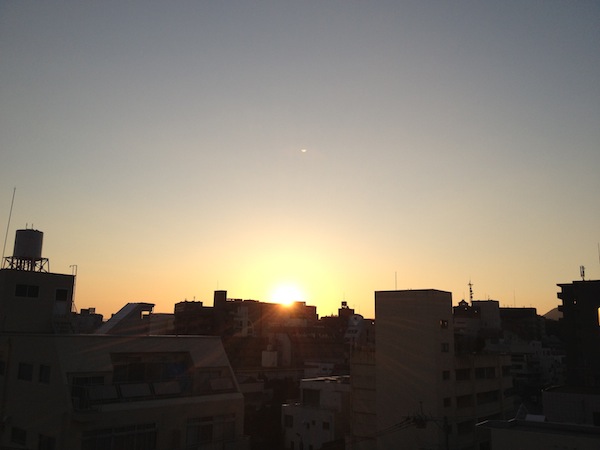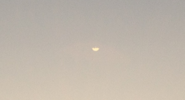 さきほど夕日を見ようと屋外に出て、iPhone4Sでワンショット。肉眼では眩しくて見えなかったが、太陽の上に半月が写っているような。いや、UFO??レンズの悪戯??・・・こんなにも簡単に撮影できるのが現在のデジタル技術。昔は一眼レフのカメラを借りて望遠鏡と接続するものの、なかなか良い写真が撮れず、現像に出す時にはいつもドキドキだった。