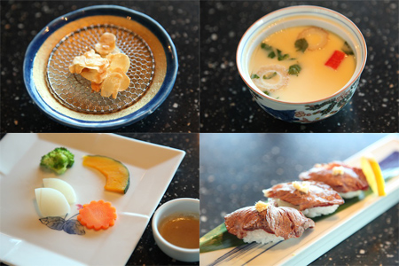 上写真は上天草の松島観光ホテル岬亭中庭に昨年8月に出来たばかりの「鉄板焼 杏布炉舎(アンブロシア)」でサーブされた料理だが、見ているだけで鉄板で焼ける音や香りが伝わって来るようだ。