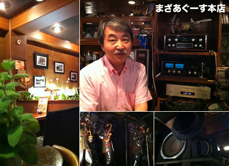 店内天井から吊り下げられた自作の大型スピーカーから鳴り響くジャズの調べ。アンプは、何とアナログな「McIntosh」だ。同店オーナーの趣味なのか、カメラやジャズメンのフィギュアなどなど・・・昔と全く変わらず、まったりと落ち着くノスタルジックな空間を醸し出している。