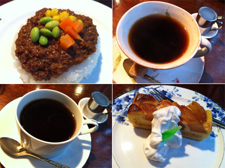 今回は「ドライカレーとメキシコ豆の珈琲」、そして「林檎タルトとオリジナルブレンド珈琲」をぺろりと平らげた。・・・ノスタルジックでアナログな店「まざあぐーす」。・・・都市部の喧噪から逃れるには、最高のロケーションと癒しの喫茶店のようだ。