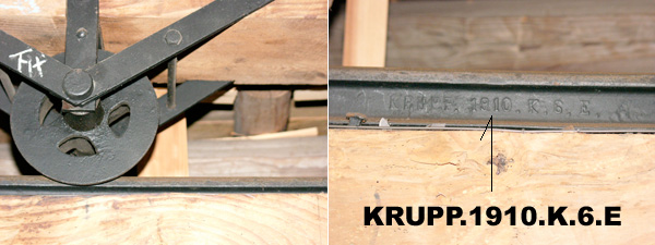 良く眺めると、「KURUPP.1910.K.6.E」と刻み込まれている。(写真下参照)・・これはドイツのクルップ社製のもので、100年前に取り付けられたものである。・・・手入れが良いのか、100年も経てば大抵の鉄は錆でボロボロになるはずだが、今でも現役で動いている事に驚きの色を隠しきれなかった。(これは一見の価値有り)