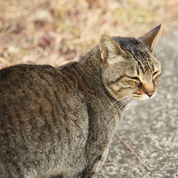 ファインダーを覗きながら・・・甘え上手な猫様は高価なコートのように毛並みがフワフワしている。たぶん甘えた人間から日々美味しい食糧をたんまりと貰っているに違いない。又、甘え下手な猫様は毛が安物のコートのようにバサバサしており、常に人間に近づく事も無く、栄養価の高い食事に有り付けないのかなど、二匹の表情をずっと伺っていた。