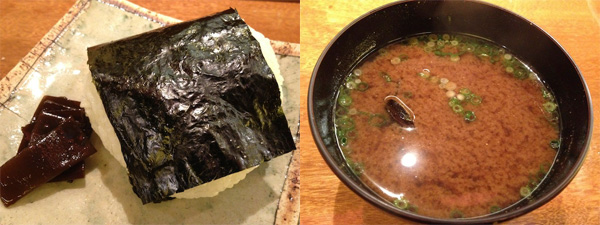 写真上は、おにぎりとシジミ汁(赤出し)。天ぷらを一応食した後に注文したものだが、やはり最後の〆には最高だ。特に酒を飲まずに食していると、同店のコースでは物足りない胃袋を持ち合わせている私には、おにぎりとシジミ汁は欠かせないものとなってしまった。