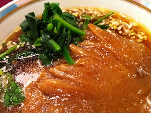 たぶん、年間でこの「フカヒレ姿煮込み湯麺」を一番食べているのは筆者ではないかと・・・定かではないが・・・ランチタイムに、時間がない、栄養を補給したい、体を温めたい・・・そんな時は、必ずと言ってよいほど、この豪華湯麺を食す。