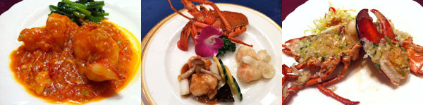 上写真は、全て四川料理専門店「桃花源」でサーブされた事のある、左から車海老、伊勢海老、オマール海老の三種。