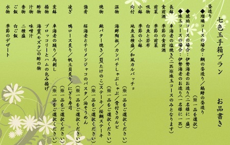 七色玉手箱(なないろたまてばこ)という言葉の響きが実に素敵だ。幼い頃の絵本が飛び出すように、色とりどりの料理が目に浮かんでしまう。