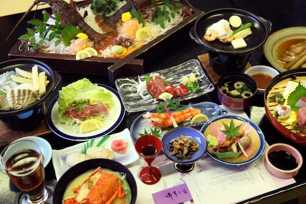 ◎上写真は、松島観光ホテル岬亭人気料理の「七色玉手箱」