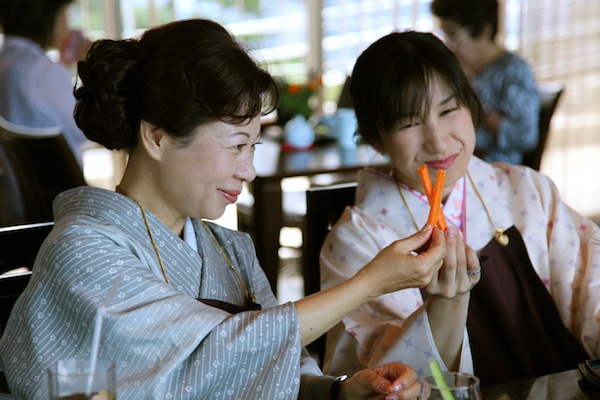 ◎上写真左から橋本久美子さん、吉井明子さん。「人参で、乾杯!」