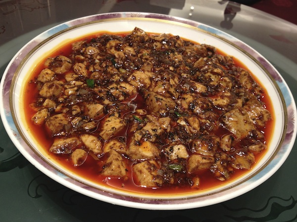 写真は桃花源で食した「四川 麻婆豆腐」。中国山椒の痺れるような辛さと辣油の辛さが絶妙に入り交じる刺激的な料理として、絶大なる人気を博している。