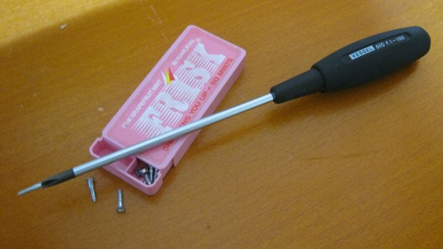 フリスク食べながら施工してる!と誤解を与えるかもしれませんが、2.1mmのビスが入ってます。カシャカシャと音も似てるんですよね。