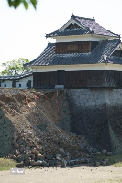 熊本県民のシンボルでもあり、観光立県の要である熊本城。14日の地震で写真のようにシャチホコや瓦が壊れ、また、戌亥櫓の石垣では二カ所が崩壊した。その他、旧細川刑部邸そばの石垣や飯田丸五階櫓などの石垣も被害を受け、次から次へとボロボロに崩れていった。