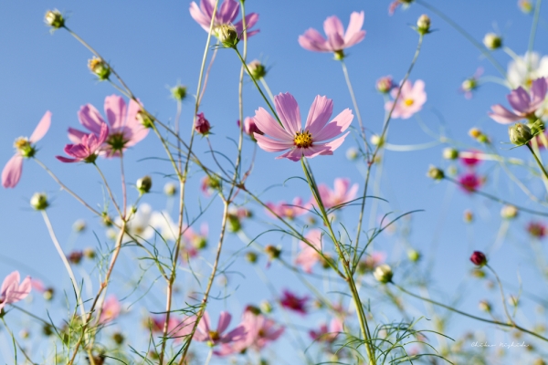 思った通り、秋桜の名所と言われる所と比較すると圧倒的に少ないが、見晴らしの良い高台にあるので、撮影は心地よい。