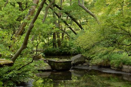 ここもかつては武家屋敷でした。 明治の後期に、美術館の創始者が荒れ果てていたこの谷を、自宅の庭園として現在の形に整備したのだそうです。