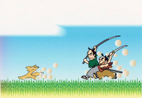 野上のベッピン狐に痛い目を見せてやろう、と考えていた彦一が、トンさんの行列が明日あるこっば聞いて、狐に化かしくらべを申し出た。約束の時刻に、萩原堤の松の枝にのっていた狐が、下を通りかかった行列の見事さに