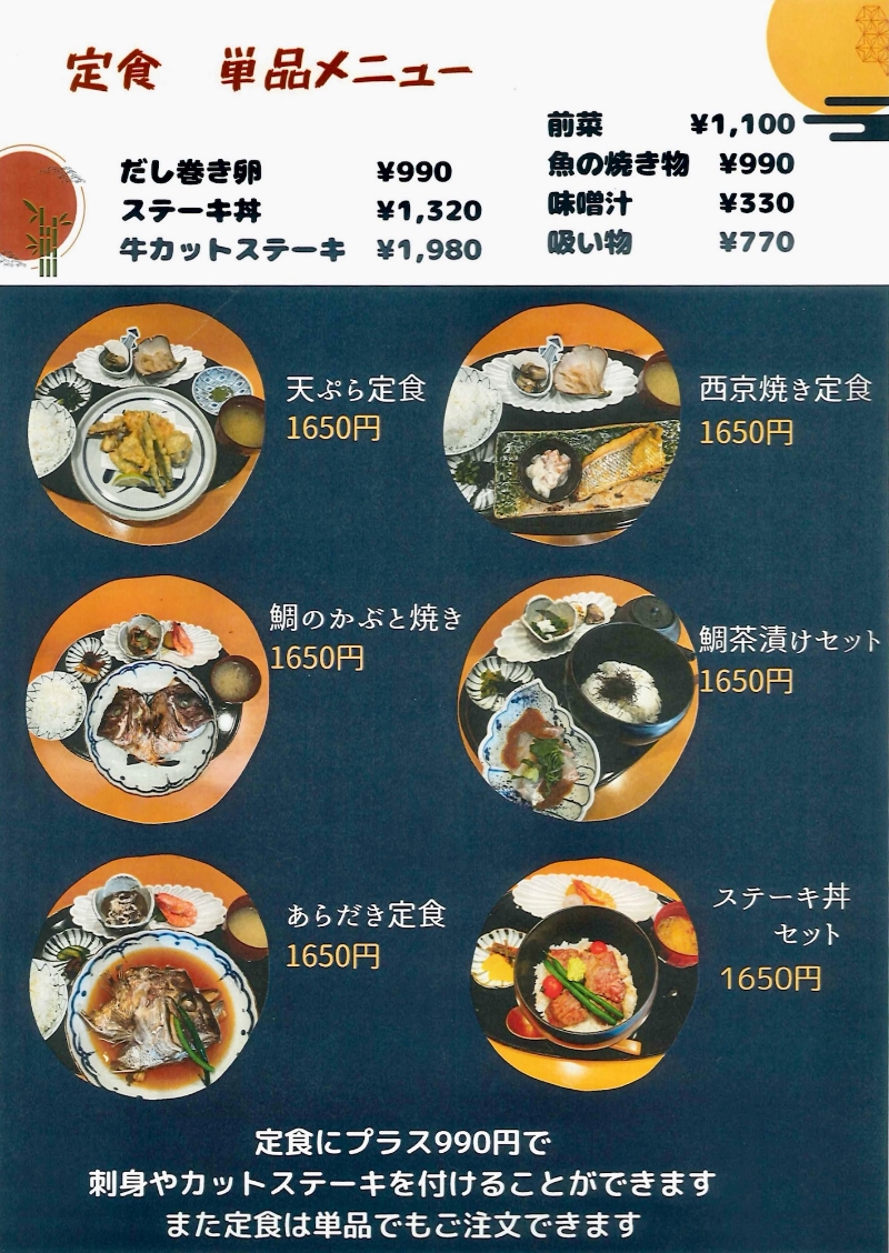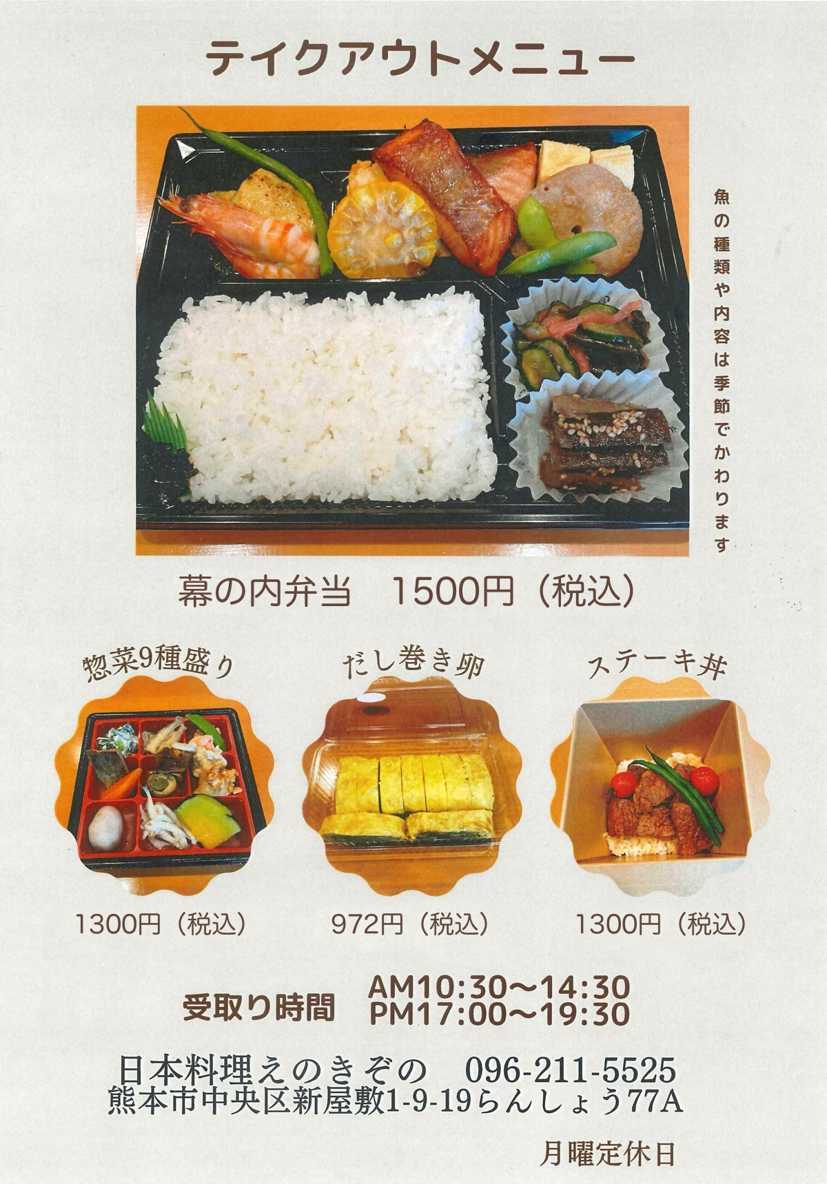 ・幕の内弁当 1,500円(税込)・惚菜9種盛り 1,300円(税込)・だし巻き卵 972円(税込)・ステーキ丼 1,300円(税込)