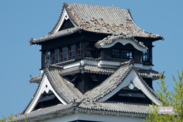 写真下は、4月15日に桜の馬場 城彩苑より撮影したもの。無残な姿を目の当たりにして、かなり凹んでしまった。