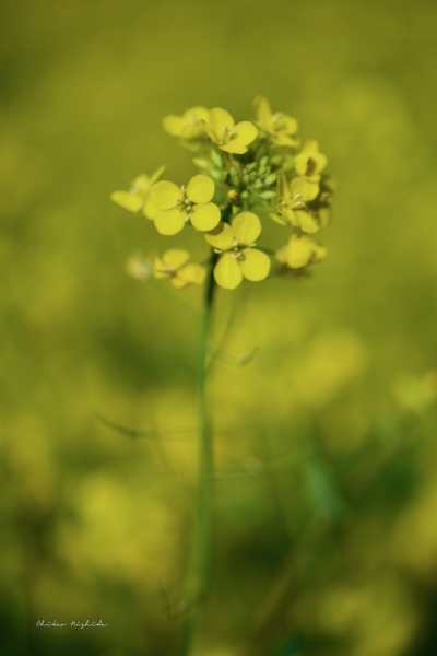 しかし、風が非常に強い。菜の花が右へ左へ揺れまくる。ワイドに撮りたいが、90mmマクロでは無理なので、菜の花に近づいて撮影しようとすると、風に揺れてフォーカスが定まらない。シャッタースピードを速くして、どうにか数枚を写し終えた。
