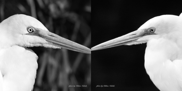 ▼右側が寛ぐ大鷺の目、左側が殺気を感じている大鷺の目